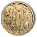 The reverse of the coin features a canonical image of Virgin Mary and Archangel Gabriel announcing to her the glad tidings of Immaculate Conception; there is the inscription ‘БЛАГОВЕЩЕНИЕ’ (Annunciation) above it. |
