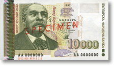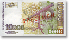 Obverse • A portrait of Dr. Peter Beron, a hologram stripe with the initials ‘БНБ’ (BNB). |