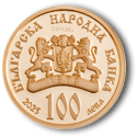 На лицевата страна на монетата: в центъра е изобразена емблемата на БНБ с годината „1879“ върху лентата. Околовръст – надпис „БЪЛГАРСКА НАРОДНА БАНКА“, номиналната стойност „100 ЛЕВА“ и годината на емисията „2025“. |