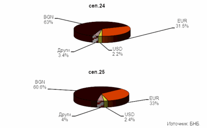 Към края на трето тримесечие на 2025 г. основен дял във валутната структура на активите на местните инвестиционни фондове имат средствата, деноминирани в български лева – 60.6% и в евро – 33%, при съответно 63% и 31.5% към септември 2024 година. Към юни 2025 г. активите, деноминирани в български лева са 61%, а тези в евро – 32.8%.