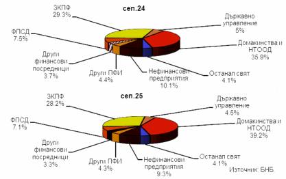 Към края на септември 2025 г. с най-големи относителни дялове в собствения капитал на местните инвестиционни фондове са резидентните сектори Домакинства и НТООД (39.2%), Застрахователни компании и пенсионни фондове (28.2%) и Нефинансови предприятия (9.3%). Най-големите относителни дялове към септември 2024 г. са съответно 35.9% за сектор Домакинства и НТООД, 29.3% за сектор Застрахователни компании и пенсионни фондове и 10.1% за сектор Нефинансови предприятия. Относителният дял на сектор Останал свят (нерезиденти) е 4.1% от общия размер на собствения капитал към септември 2025 г., като се запазва без промяна спрямо септември 2024 г. и юни 2025 година.