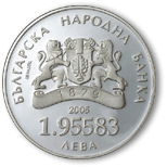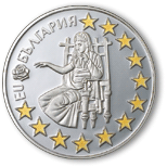 По повод предстоящото подписване на Договора за присъединяване на Република България към Европейския съюз и на основание чл. 25, ал. 1 от ЗБНБ Българската народна банка пуска в обращение от 25 април 2005 г. сребърна възпоменателна монета с нанесено частично позлатяване „България - Европейски съюз” с номинална стойност 1.95583 лева, емисия 2005 г.