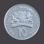 На лицевата страна на монетата са изобразени следните елементи: емблемата на БНБ с годината „1879“ върху лентата; в полукръг горе има надпис „БЪЛГАРСКА НАРОДНА БАНКА“, а долу – номиналната стойност „10 ЛЕВА“ и годината на емисията „2021“. |