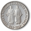 На обратната страна на монетата са изобразени св.св. Кирил и Методий, като всеки от тях държи в ръка пергамент. Околовръст има надписи „КИРИЛ И МЕТОДИЙ”, „СЛАВЯНСКА ПИСМЕНОСТ” и „863-1963”. |