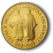 На обратната страна на монетата са изобразени св.св. Кирил и Методий, като всеки от тях държи в ръка пергамент. Околовръст има надписи „КИРИЛ И МЕТОДИЙ”, „СЛАВЯНСКА ПИСМЕНОСТ” и „863-1963”. |