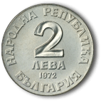На лицевата страна на монетата в средата на три реда е изписано числото на номиналната стойност „2”, думата „ЛЕВА” и годината на емисия „1972”. Околовръст има надписи „НАРОДНА РЕПУБЛИКА” и „БЪЛГАРИЯ”. |