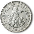 На обратната страна на монетата е изобразен Иван Боримечката, който в дясната си ръка държи пушка, на фона на черешовото топче. Вляво от него е изписана годината „1876”. Композицията завършва с кант околовръст, а във външния пръстен има надписи „АПРИЛСКО ВЪСТАНИЕ” и „СТО ГОДИНИ”, разделени от две точки. |