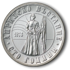 На обратната страна на монетата е изобразена Райна Попгеоргиева (Райна Княгиня), която в дясната си ръка държи сабя, а в лявата – знаме. Вляво от нея е изписана годината „1876”. Композицията завършва с кант околовръст, а във външния пръстен има надписи „АПРИЛСКО ВЪСТАНИЕ” и „СТО ГОДИНИ”, разделени от две точки. |