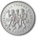 На обратната страна на монетата е изобразена група от три деца в народни носии, които играят хоро. Вдясно от тях е емблемата на УНИЦЕФ, а вляво – българската емблема на Международната година на детето. Околовръст има надпис „МЕЖДУНАРОДНА ГОДИНА НА ДЕТЕТО*1979*” и кръг от стилизирани цветчета. |