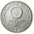 На лицевата страна на монетата в горната част е разположен венец с надпис в него „БЛАГОДАРНОТО ОТЕЧЕСТВО НА СВОИТЕ ХРАБРИ СИНОВЕ 1885”. Отдолу са изписани годината на емисия „1981” и номиналната стойност „2 ЛЕВА”. Околовръст има надписи „1300 ГОДИНИ БЪЛГАРИЯ” и „НРБ”, разделени от лаврови клонки. |