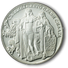 На обратната страна на монетата са изобразени две женски фигури, символизиращи Княжество България и Източна Румелия. Двете фигури държат меч, а дясната и щит с надпис на три реда „6 IX 1885 1985”. Околовръст има надпис „СЪЕДИНЕНИЕТО ПРАВИ СИЛАТА”. |