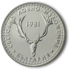 На обратната страна на монетата са изобразени рога на трофеен елен, между които е изписано „1981”. Околовръст има надписи „СВЕТОВНО ЛОВНО ИЗЛОЖЕНИЕ” и „БЪЛГАРИЯ”. Композицията завършва с външен кръг от стилизирани кръстчета. |