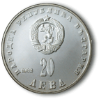 На лицевата страна на монетата в горната част е разположен държавният герб на Народна република България, под него е числото на номиналната стойност „20”, а вляво – годината на емисия „1982”. Околовръст има надписи „НАРОДНА РЕПУБЛИКА БЪЛГАРИЯ” и „ЛЕВА”. |