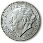 На обратната страна на монетата е изобразен Георги Димитров, а околовръст има надписи „ГЕОРГИ ДИМИТРОВ” и „1882•1982”. |