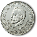 На обратната страна на монетата е изобразен Алеко Константинов, отдолу околовръст има надпис „АЛЕКО КОНСТАНТИНОВ”. По външния пръстен околовръст има надписи „90 ГОДИНИ ОРГАНИЗИРАН ТУРИЗЪМ” и „1895•1985”. |