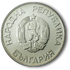 На обратната страна на монетата в центъра е разположен държавният герб на Народна република България, а околовръст има надпис „НАРОДНА РЕПУБЛИКА БЪЛГАРИЯ”. |