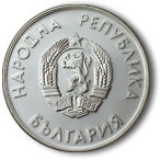 На обратната страна на монетата в центъра е разположен държавният герб на Народна република България. Околовръст има надпис „НАРОДНА РЕПУБЛИКА БЪЛГАРИЯ”. |