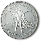 На обратната страна на монетата има стилизирано изображение на човек с разперени ръце на фона на крило, пресъздаващо рисунка на Леонардо Да Винчи. Вляво на два реда са изписани годината на основаване „1888” и на юбилея „1988”. Околовръст има надписи „СОФИЙСКИ УНИВЕРСИТЕТ” и „КЛИМЕНТ ОХРИДСКИ”. |