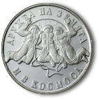 На обратната страна на монетата са изобразени трима космонавти пред люка на космически кораб. Околовръст има надпис „ДРУЖБА НА ЗЕМЯТА И В КОСМОСА”. |