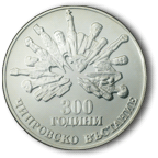 На обратната страна на монетата е изобразен фрагмент от паметника на Чипровското въстание в гр. Чипровци. Под него има надпис на два реда „300 ГОДИНИ”, а отдолу околовръст – надпис „ЧИПРОВСКО ВЪСТАНИЕ”. |