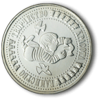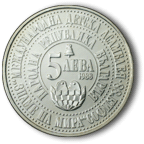 На обратната страна на монетата е изобразено легнало дете, което играе с три гълъба. Околовръст между два зрънчести кръга има надпис „ЕДИНСТВО, ТВОРЧЕСТВО, КРАСОТА”, като всяка от думите е отделена с по шест броя камбани. |