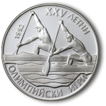 На обратната страна на монетата са изобразени двама състезатели по кану в лодки. Околовръст има надпис „ХХV ЛЕТНИ ОЛИМПИЙСКИ ИГРИ”. До веслото на задния състезател е изписана годината „1992”. |