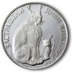 На обратната страна на монетата са изобразени два риса. Околовръст има надпис „ЗАСТРАШЕНИ ДИВИ ЖИВОТНИ”. |