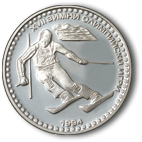 На обратната страна на монетата е изобразен състезател по ски-слалом на фона на планина. Околовръст има надписи „XVII ЗИМНИ ОЛИМПИЙСКИ ИГРИ”, „1994”, както и кръг от снежинки. |