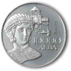 На лицевата страна на монетата e изобразен портрет на Десислава – съпруга на севастократор Калоян от времето на Втората българска държава и ктиторица (дарителка) на Боянската църква, на фона на самата църква. Вдясно от композицията на два реда е изписано: числото на номиналната стойност „10 000”, а под него надпис „ЛЕВА”. |