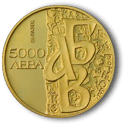На лицевата страна на монетата в дясната част са буквите „А”, „Б” и „В” на фона на плетеница от славянските букви. Вляво от композицията на два реда е изписано: числото на номиналната стойност „5000”, а под него надпис „ЛЕВА”. |