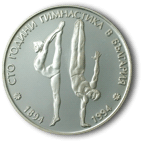 На обратната страна на монетата са изобразени две фигури на състезатели по гимнастика. Околовръст има надпис „100 ГОДИНИ ГИМНАСТИКА В БЪЛГАРИЯ ⋅ 1894 ⋅ 1994”. |