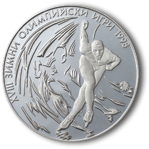 На обратната страна на монетата е изобразен състезател по кънки-бягане. Околовръст има надпис „XVIII ЗИМНИ ОЛИМПИЙСКИ ИГРИ 1998”. |