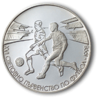 На обратната страна на монетата са изобразени двама футболисти с топка на фона на стадион. Околовръст има надпис „XVI СВЕТОВНО ПЪРВЕНСТВО ПО ФУТБОЛ – 1998”. |