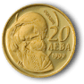 На лицевата страна на монетата има канонично изображение на Богородица с Младенеца, а вдясно на три реда са: числото на номиналната стойност „20”, текстът „ЛЕВА” и годината на емисия „1999”. |