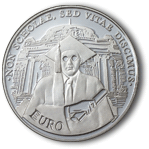 На обратната страна на монетата на фона на сградата на Софийския университет „Св. Климент Охридски” е изобразен студент с тога, който държи в дясната си ръка свитък. В долната част на тогата има вдлъбнат надпис „EURO”. Околовръст е разположен надпис „NON SCHOLAE, SED VITAE DISCIMUS” („Не за училището, а за живота учим”). |