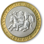 На обратната страна е изобразена една от плочките на съкровището от Летница (ІV век пр. Хр.), представяща брадат конник с копие в дясната ръка, зад него – конска глава в профил наляво, а околовръст върху външния пръстен е изписан надпис „СЪКРОВИЩАТА НА БЪЛГАРИЯ • ЛЕТНИЦА”. |