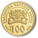 На лицевата страна на монетата са изобразени: емблемата на БНБ с годината „1879“ върху лентата; номиналната стойност „100 ЛЕВА“ и годината на емисията „2014“; околовръст има надпис „БЪЛГАРСКА НАРОДНА БАНКА“. |
