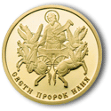 На обратната страна на монетата е изобразен Св. Пророк Илия в небесната му колесница; под него в полукръг има надпис „СВЕТИ ПРОРОК ИЛИЯ“. |