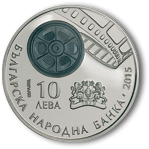 The obverse of the coin, within an embedded medallion, features a film spool unwinding through the medallion. Underneath are: the nominal value ‘10 ЛЕВА’ (10 levs) and the BNB logo with the year ‘1879’ on the strip. ‘БЪЛГАРСКА НАРОДНА БАНКА’ (Bulgarian National Bank) and the year of issue ‘2015’ are inscribed in circumference. |