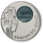 The reverse features a cinematic camera and the inscription ‘100 ГОДИНИ’ (100 Years) on the embedded medallion where the zeros are in the form of film spools. In circumference beneath the medallion runs the inscription ‘БЪЛГАРСКО КИНО’ (Bulgarian Cinema). |